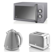 SWAN Retro 1.5L 3KW Jug Kettle, 2 Slice Toaster & 25L 900w Microwave in Grey