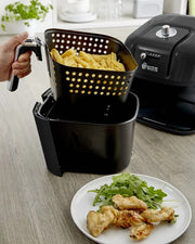 Want the delicious taste of fried foods but much healthier? The Swan Retro Manual Air Fryer uses little to no oil when frying food for the same great taste with up to 80 per cent less fat. This air fryer combines style and functionality with its cool retro-inspired design it makes a beautiful addition to any kitchen. Its generous 6 litre capacity means you can fry enough food for the whole family, quickly and easily. The chrome Swan knobs allows you to choose your temperature and time, so you can cook a variety of foods with little effort. The auto-stop function and count-down memory allow you to keep an eye on your frying by pulling out the pan, and once you place it back in, it picks up where it left off. The built-in safe start sensor means the fryer won't work unless the pan is in and placed properly, ensuring your safety. Its so simple and easy to use! The pan can be removed and inside is a detachable non-stick cooking tray for easy serving of food and quick cleaning, just place it in the dishwasher.