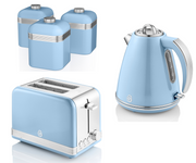 Brand New Swan Retro Kitchen Set of 5 in Blue including 1.5L 3KW Jug Kettle, 2 Slice Toaster & Tea, Coffee & Sugar Canisters.