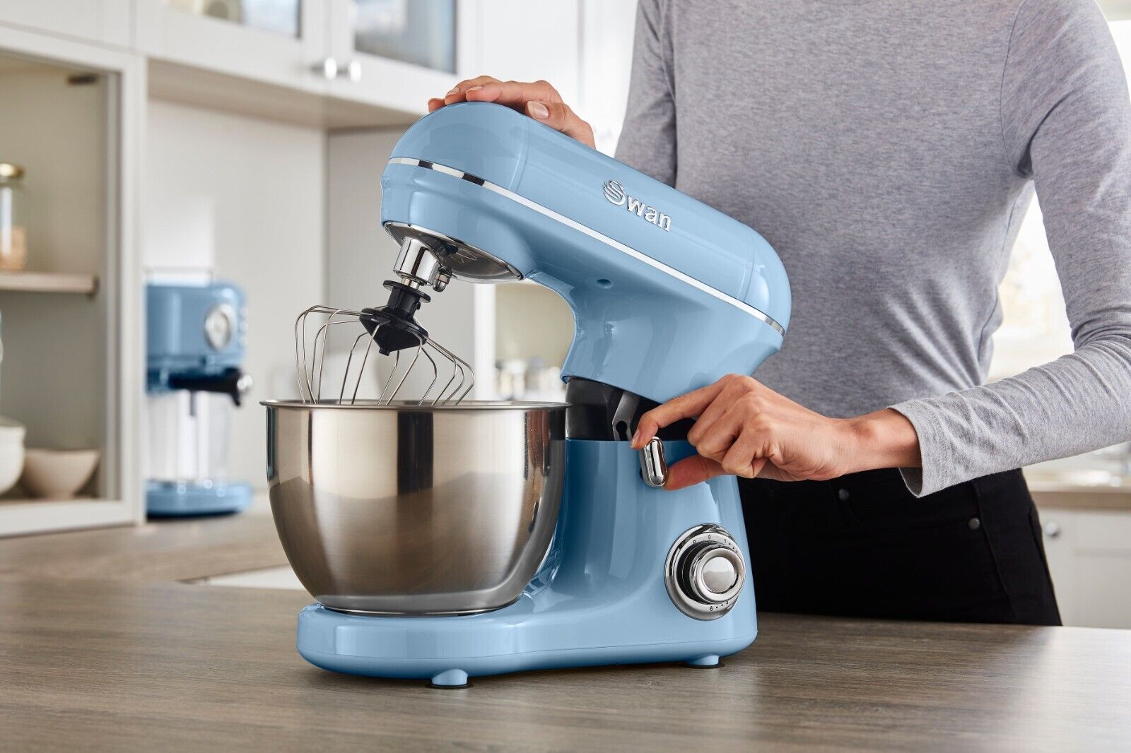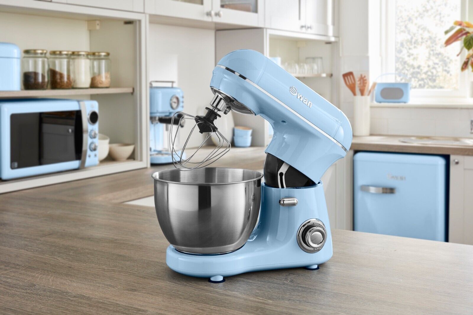 Swan Retro Blue Stand Mixer 4L Stainless Steel Bowl 8 Speed Settings SP21060BLN