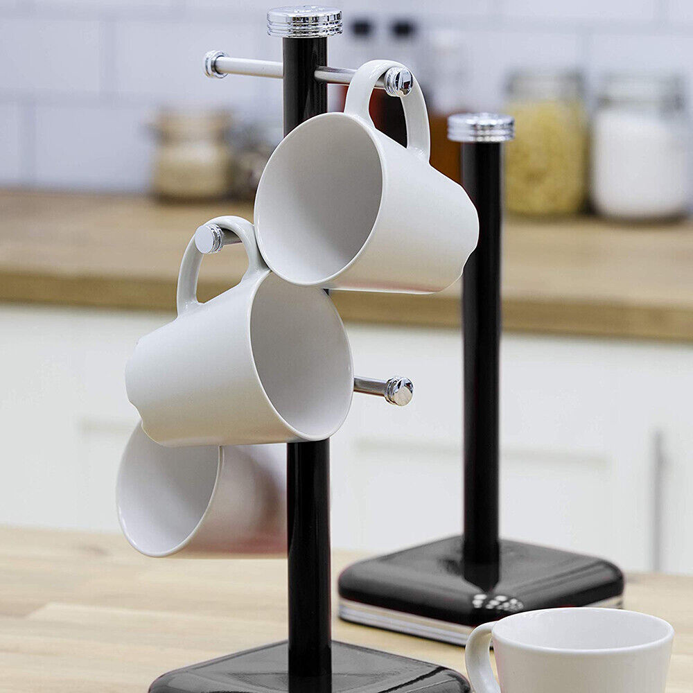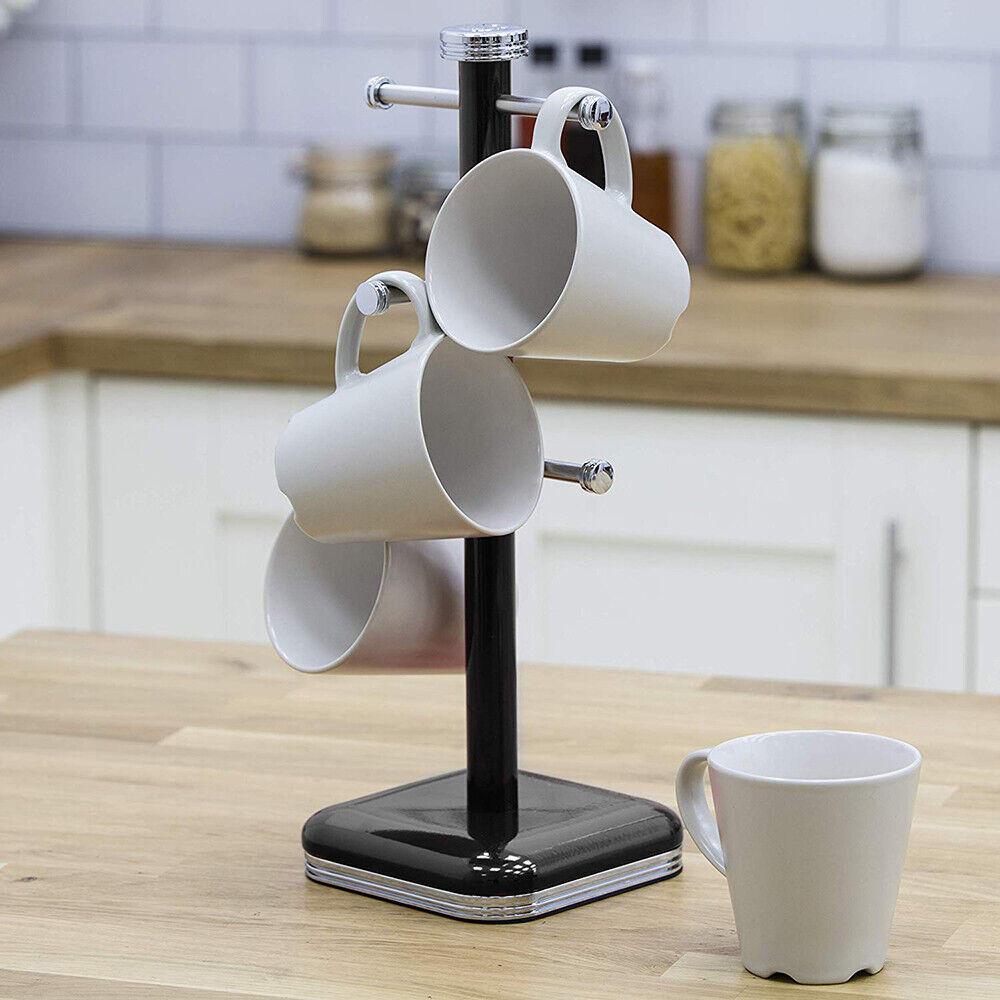 Made from durable stainless steel and displaying up to 6 cups, this stylish mug tree keeps your countertops clean and tidy whilst also adding convenience. Its sturdy construction offers added durability whilst its chrome-plated branch stoppers add a touch of style into your kitchen. The mug tree comes complete with a round, chrome-finish base with a soft underliner, which adds stability whilst also protecting your kitchen surfaces. Requiring a simple wipe clean, for easy maintenance, and available in a variety of colours, this 6 Cup Mug Tree makes for both a stylish and practical addition to your home.