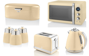 Brand New Swan Retro Set of 7 in Cream including 1.5L 3KW Jug Kettle, 2 Slice Toaster, 800W 20L Digital Microwave, Bread Bin & Tea, Coffee, Sugar Canisters. Vintage Matching Kitchen Set of 7 in Cream