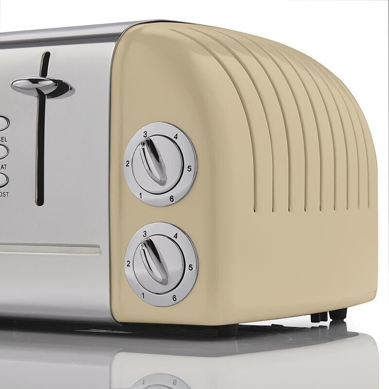 Introducing the Swan 4 Slice Retro Toaster to breakfast time! With a cool retro design and 4 slice capacity, it's ideal for the morning breakfast rush.The Swan Retro 4-slice toaster is perfect for the morning breakfast rush! With a generous 4 slice capacity, there is extra space for little mouths and makes romantic breakfasts in bed effortless and easy. Featuring 4 wide slots this Retro toaster can accommodate bread of all sizes, crumpets, bagels, muffins and more. Self-centering slots provide an all-round even browning, whilst the slide-out crumb tray makes for an effortless clean up! Independent electronic browning control ensures your bread is toasted perfectly every time. The high-lift function makes it easier and safer to remove your bread after it has toasted. Handy defrost, reheat and cancel buttons allow for versatile use. So, you can toast straight from frozen or reheat toast without cooking it further.