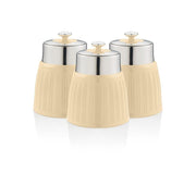 Keep your tea, coffee, and sugar fresh at all times with the Swan Retro set of three canisters. The practical, stylish and quirky design of these canisters with their striped plastic casing and the chrome pull-off lid adds a touch of cool retro style to any kitchen.Made from durable plastic and featuring an airtight lid, these canisters ensure maximum freshness. The generous capacity ensures that you can store plenty of coffee, sugar or tea bags. The canisters are not labelled so you can use them to store a range of perishables such as pasta, rice, flour, nuts, biscuits, or anything else you want to store away safely. Easy to clean - just a wipe down with a damp cloth. Matching items are available as part of the Swan Retro range. Inspired by the retro styling of the 50's, these Swan Retro storage canister with their stylish vertical stripes and stainless-steel lids are the perfect choice for the style conscious homeowner.