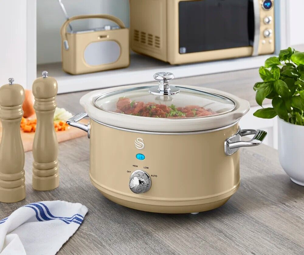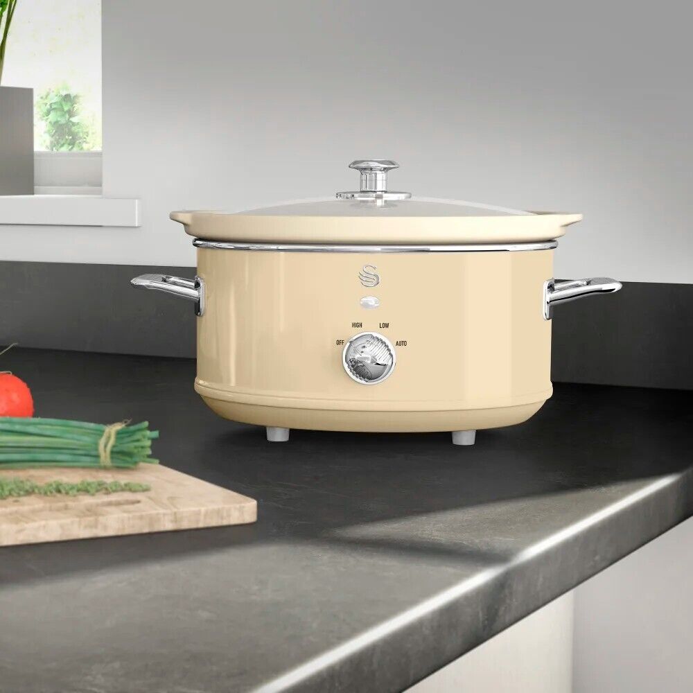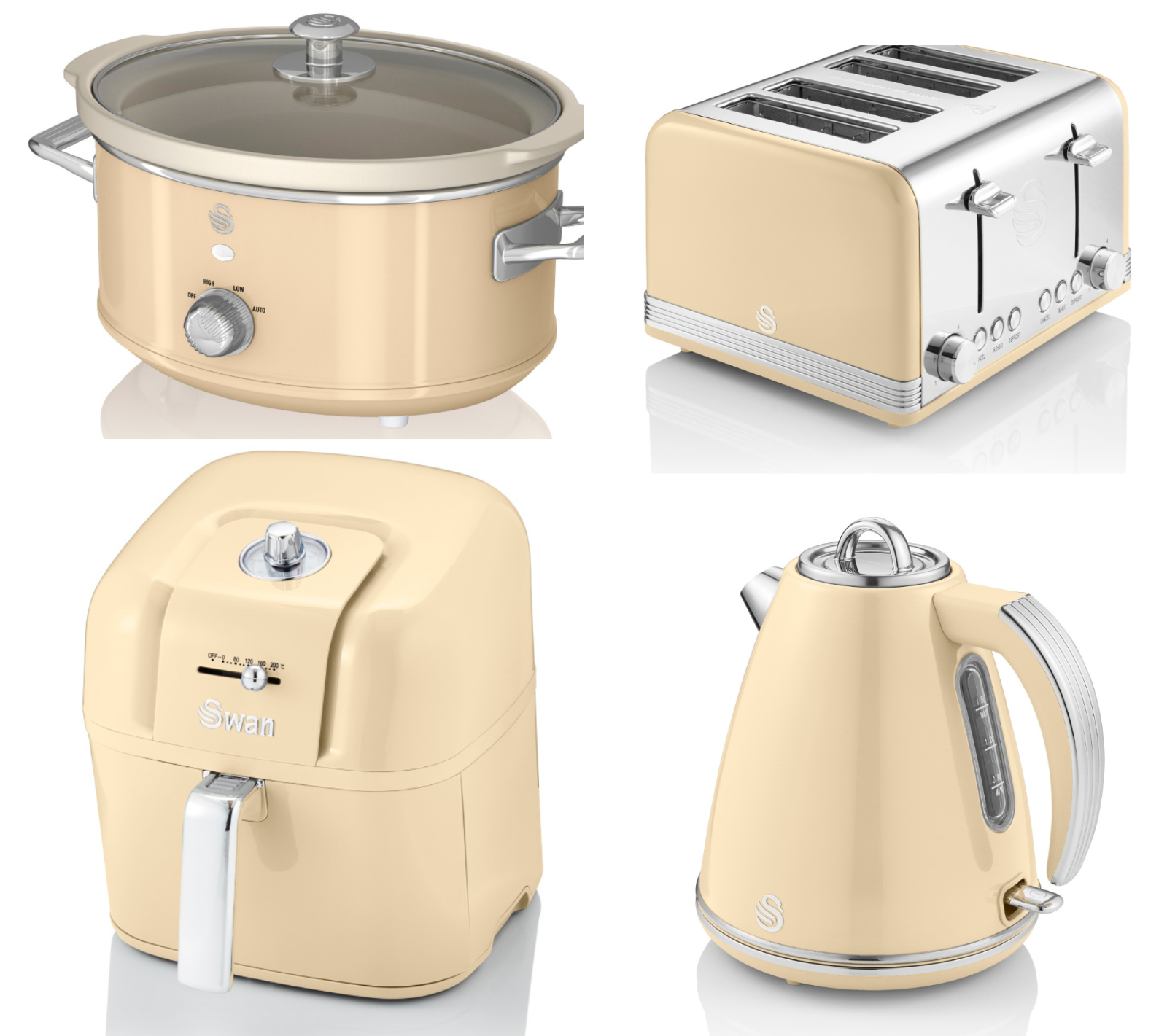Swan Retro Cream 1.5L 3KW Jug Kettle, 4 Slice Toaster, 6L Air Fryer & 3.5L Slow Cooker Kitchen Set