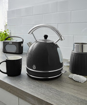 Swan Retro Dome Kettle & 2 Slice Toaster Vintage Kitchen Electrical Set in Black