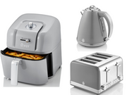Swan Retro Grey 1.5L 3KW Jug Kettle, 4 Slice Toaster & 6L Manual Air Fryer Matching Kitchen Set
