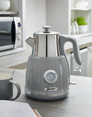SWAN Retro Grey Jug Dial Kettle, 2 Slice Toaster & Breadbin Vintage Kitchen Set