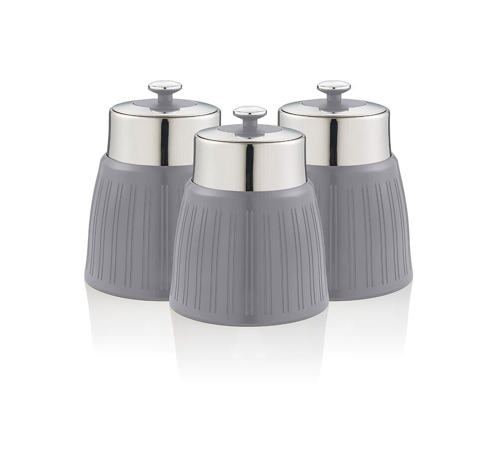 Brand New Swan Retro Set of 3 Tea, Coffee, Sugar Canisters in Grey