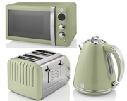 Brand New Swan Retro Set in Green including 1.5L 3KW Jug Kettle, 4 Slice Toaster & 800W 20L Digital Microwave