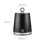 Swan Serenity Bread Bin & Tea, Coffee, Sugar Canisters in Black with Polished Stainless Steel Accents. Beautiful Design Matching Swan Kitchen Storage Set with a Sleek Black Finish