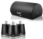 Swan Serenity Black Bread Bin & Tea Coffee Sugar Canisters Kitchen Storage Set