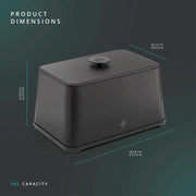 Store all of your favourite baked goods in this sleek black Bread Bin from Swans Stealth Collection. Utilising simple matt finishes to subtly add style to any kitchen, it effortlessly combines functionality with modern design to create a truly unique storage solution. The large 16L capacity is ideal for storing multiple loaves at once, whilst the compact design ensures the bread bin doesn`t take up too much space on your worktop. The durable iron body locks out moisture, ensuring the contents stay fresher for longer, with an easy lift lid that offers simple access. Non-slip feet keep the bread bin secure on the worktop, whilst a simple wipe clean is all that is needed to maintain the matt finish.