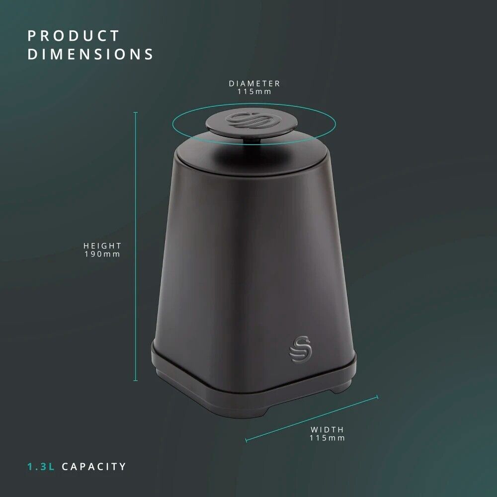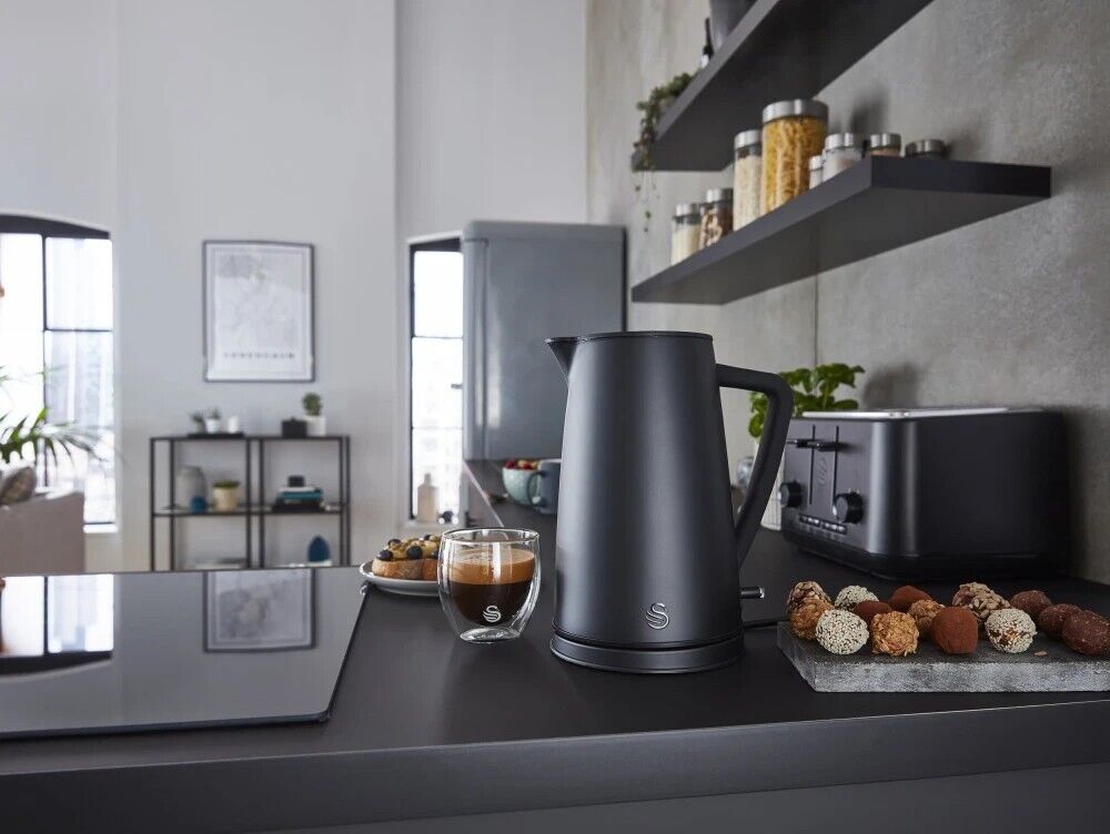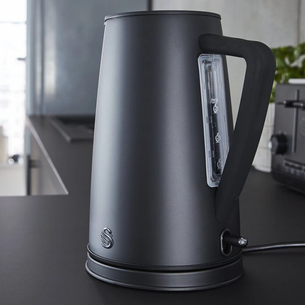 This sleek, contemporary, and stylish Swan 1.7 litre Stealth kettle is perfect for guys on the go, busy kitchens, and those looking for high performance without having to compromise on style. Sleek and streamlined design with a luxurious matt black finish. With its top-level design combined with its high functionality, you will enjoy making your cuppa almost as much as drinking it. The powerful 3KW concealed heating element provides a rapid boil so you can make a round of drinks in no time at all. The generous 1.7 litre capacity allows you to make up to 8 cups of tea, coffee, hot chocolate at once, and is perfect for boiling water for cooking. Cordless operation allows for maximum manoeuvrability, and a specially designed integrated spout allows for targeted pouring with no drips or spills. With a range of other impressive functions such as boil-dry protection and automatic cut-off to ensure your safety, as well as a 360-degree rotational base so you can easily return the kettle to its base even in a rush