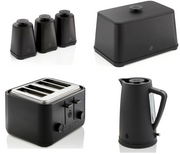 Swan Stealth Black 1.7L Kettle, 4 Slice Toaster, Breadbin & Canisters Matching Kitchen Set