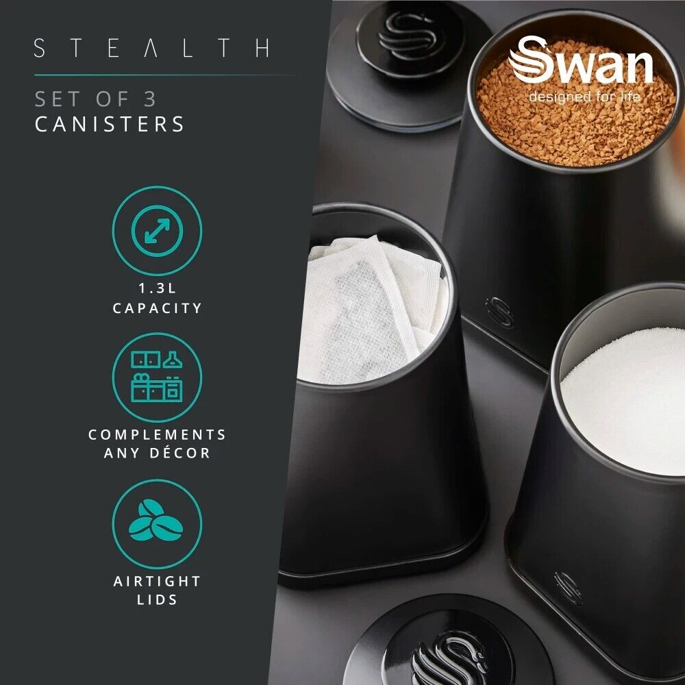 SWAN Stealth Tea, Coffee, Sugar Canisters