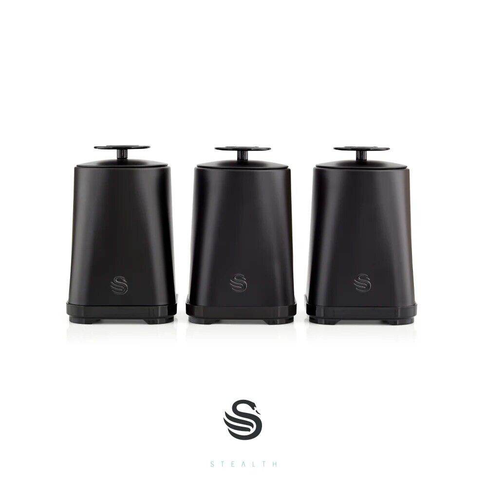 Swan Stealth Black Tea Coffee Sugar Canisters Storage Set SWKA18521BLKN