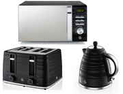 Swan Symphony Black Kettle 4 Slice Toaster & 700W Microwave Matching Kitchen Set