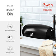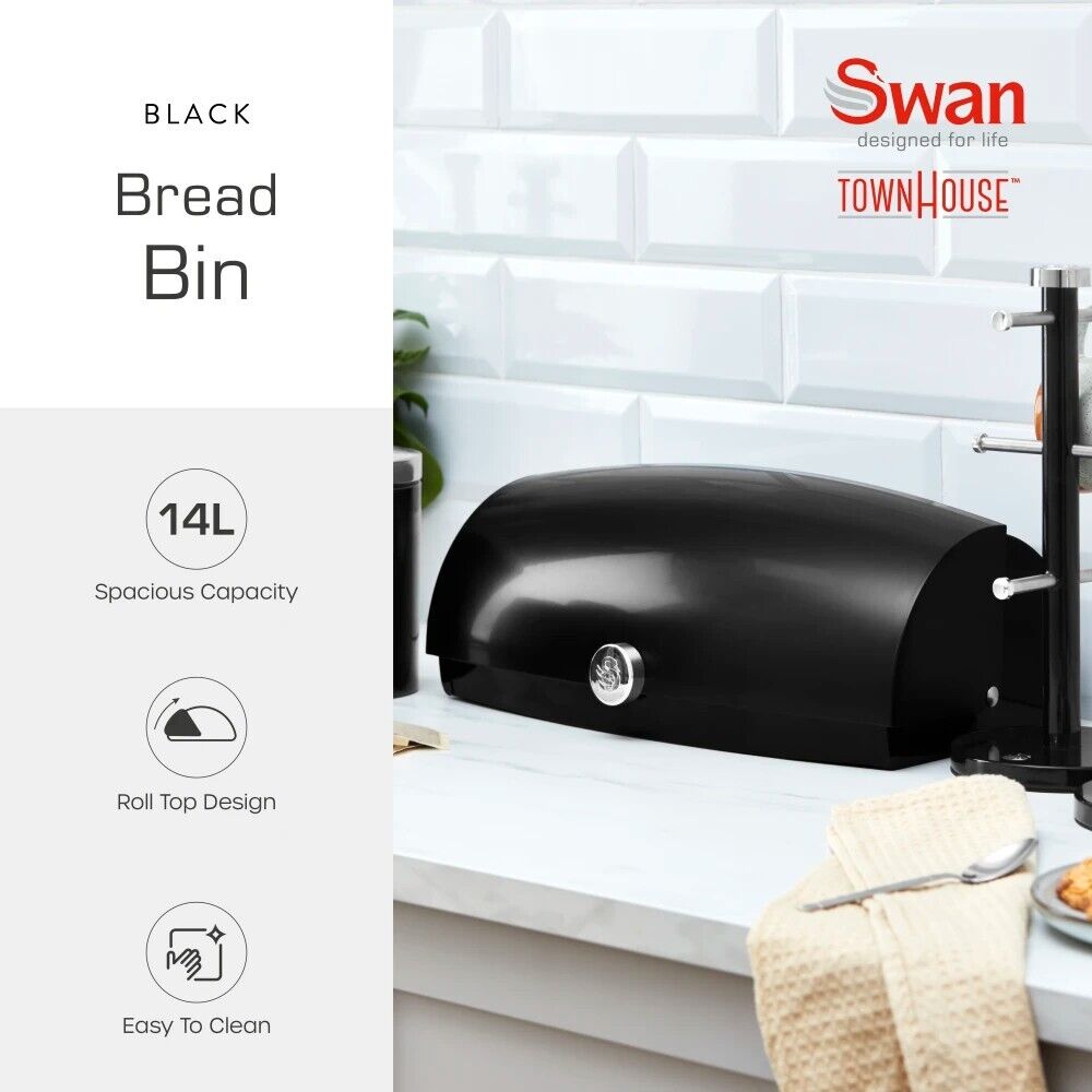 The Swan Townhouse SWKA18529BLK black bread bin is