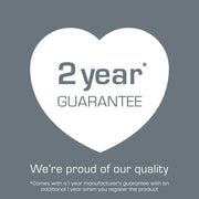 - All items have a 12-month warranty, plus optional extended manufacturer warranty once registered.