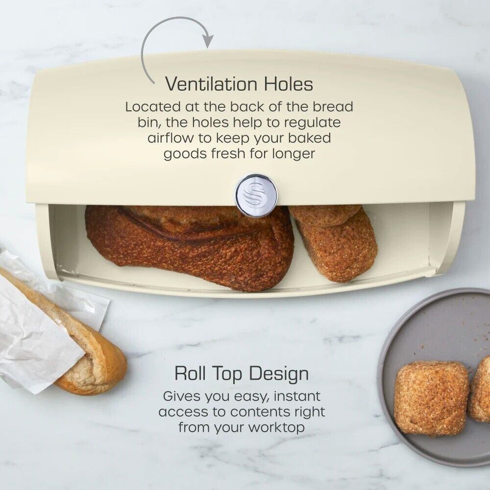 Swan Townhouse Cream Bread Bin with Roll Top Lid Modern Design SWKA18529CN