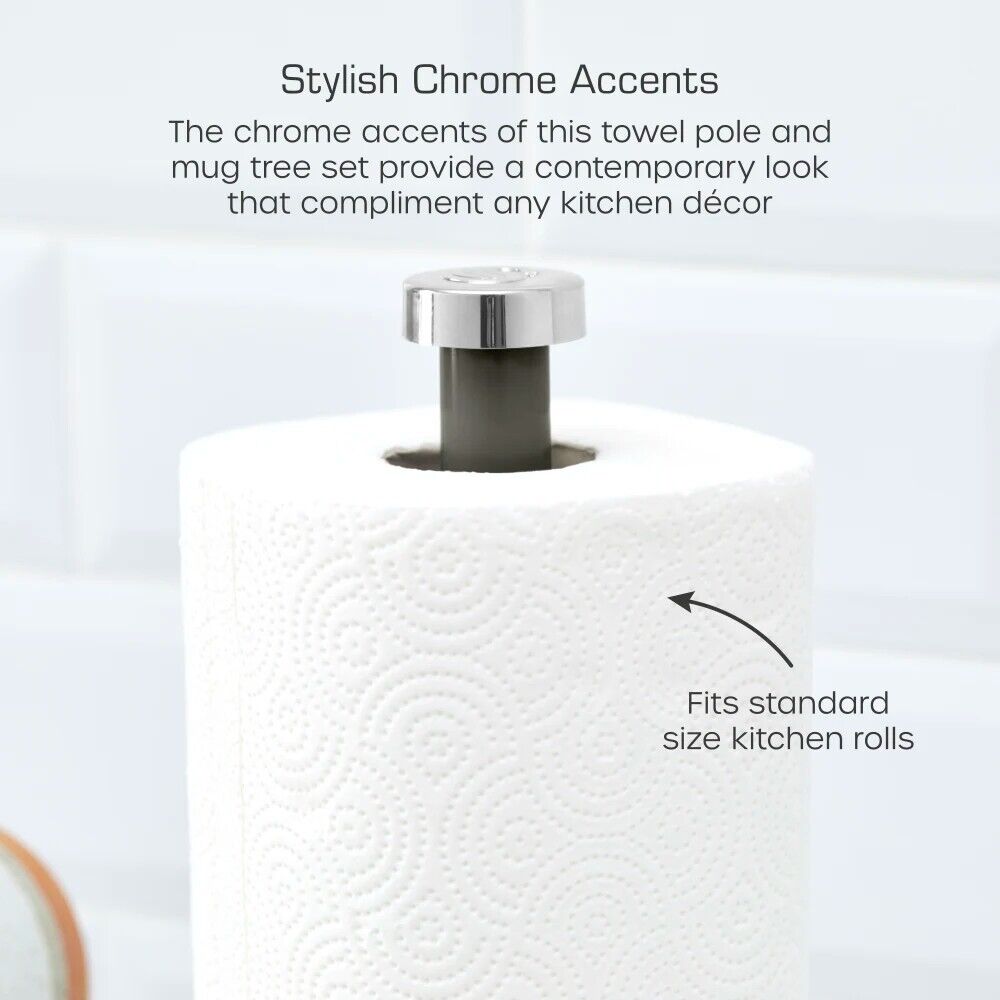 stylish chrome accents to compliment any kitchen decor. The mug tree can hold
