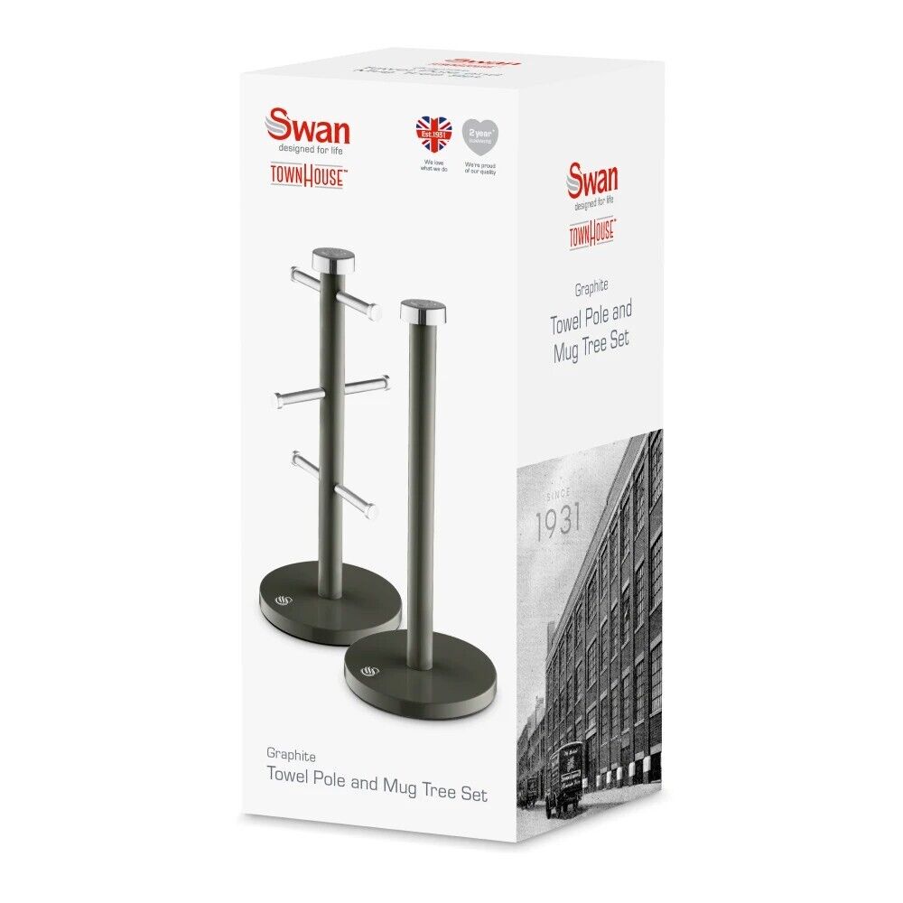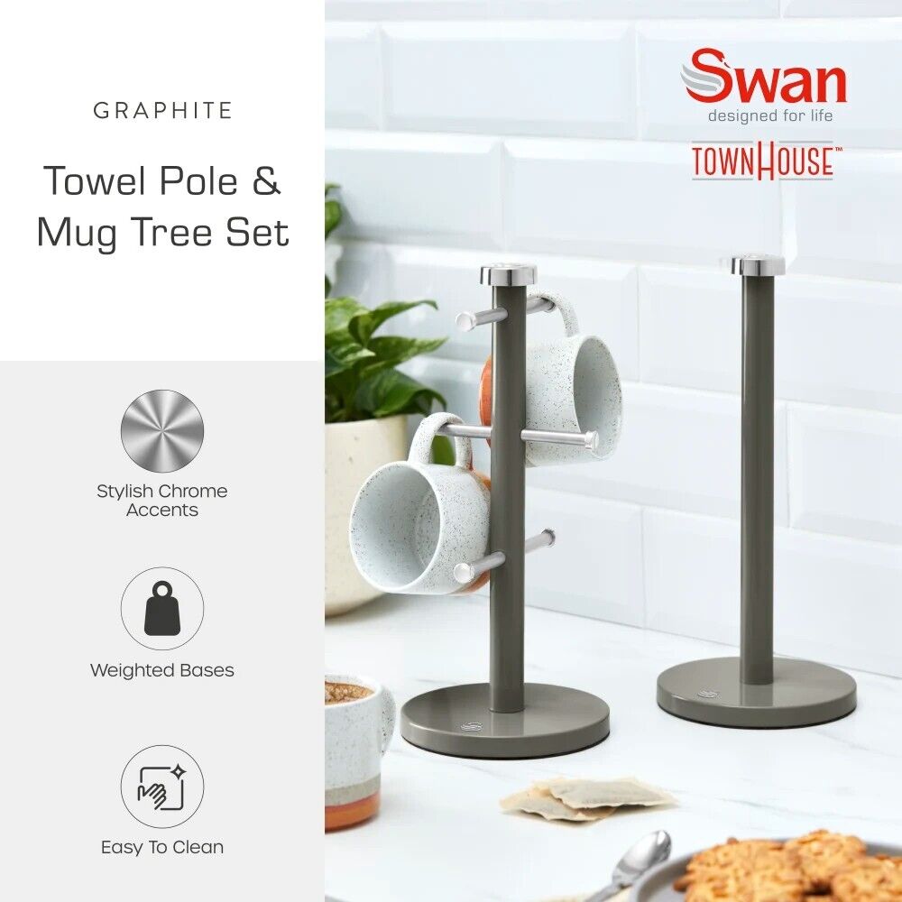 Swan Townhouse Graphite Mug Tree & Towel Pole Grey Kitchen Storage SWKA18531GRP