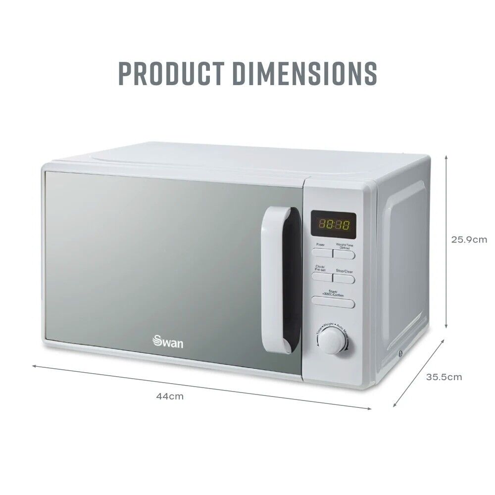 Elevate your kitchen experience with the Swan SM4421WHT Microwave. This sleek, modern microwave in white is packed with features to make cooking simpler and faster. With an impressive 800W of power and a 20L capacity, it's perfect for any household