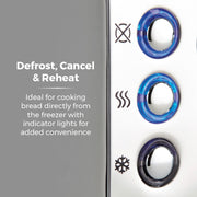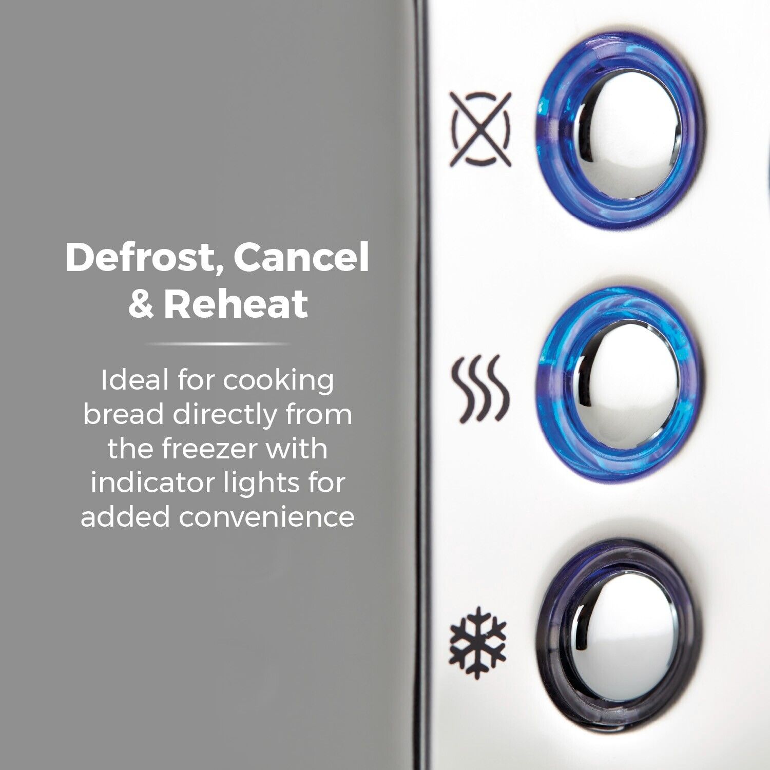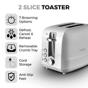 This Ash 2-Slice Toaster brings contemporary style to your kitchen with its sleek grey and chrome body and premium matte finish. It features modern design and functionality to make family breakfasts simple, providing 7 different browning levels to create the perfectly-toasted consistency for your bread. A self-centering function keeps each slice aligned inside the slot to ensure even toasting on both sides of the bread. There are defrost and reheat options to toast directly from frozen, or warm up forgotten slices to take the stress out of your morning schedule