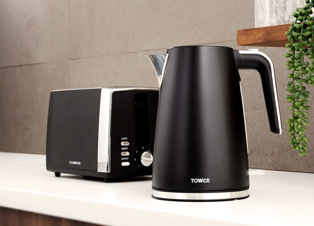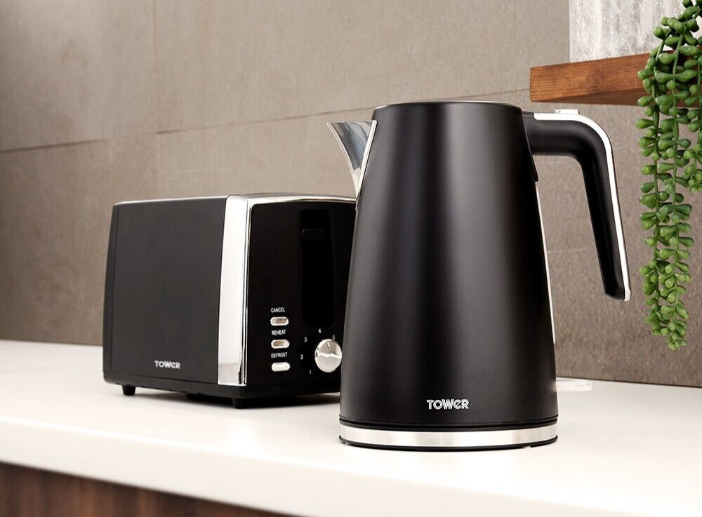 Brand New Tower Ash 1.7L 3KW Kettle & 2 Slice Toaster. Matching Set in Black & Chrome