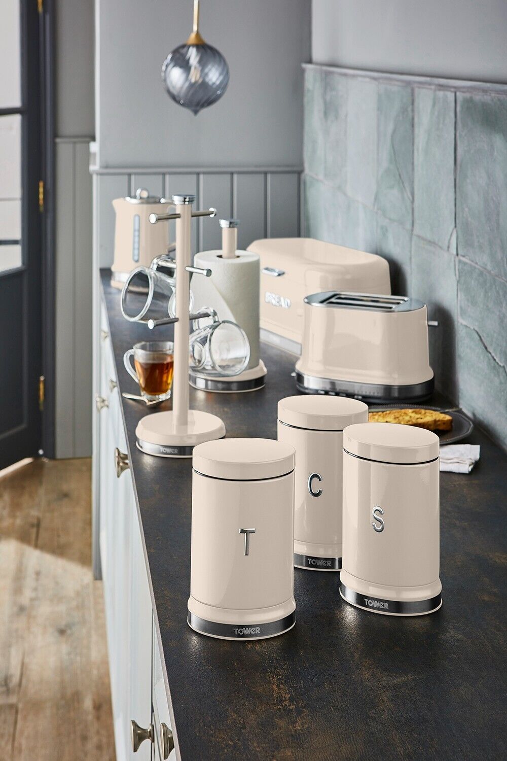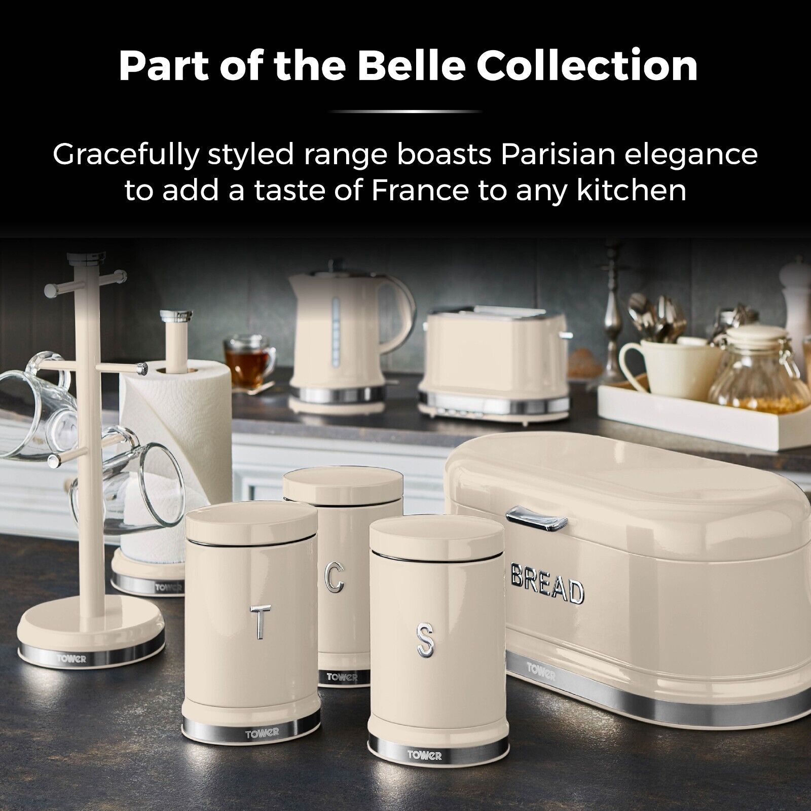 Tower Belle Chantilly Bread Bin Canisters Kitchen Storage Set in Cream