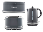 Tower Belle Kettle Toaster & Bread Bin Matching Kitchen Set in Graphite Grey