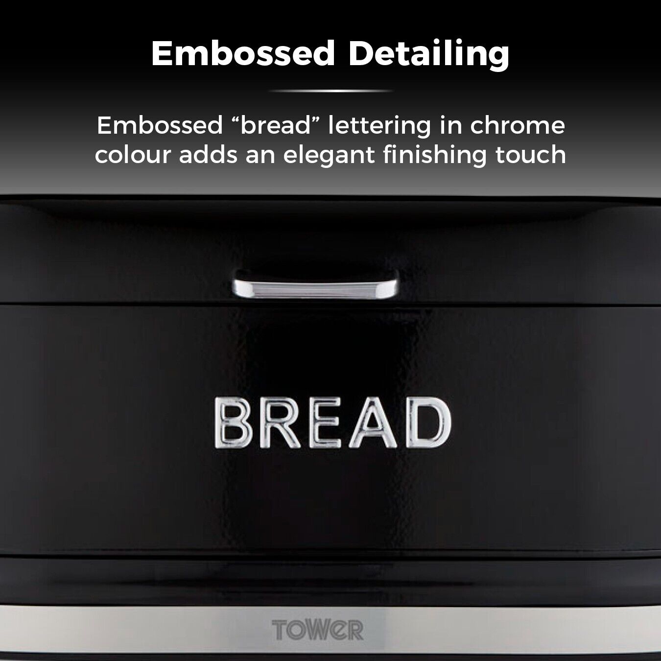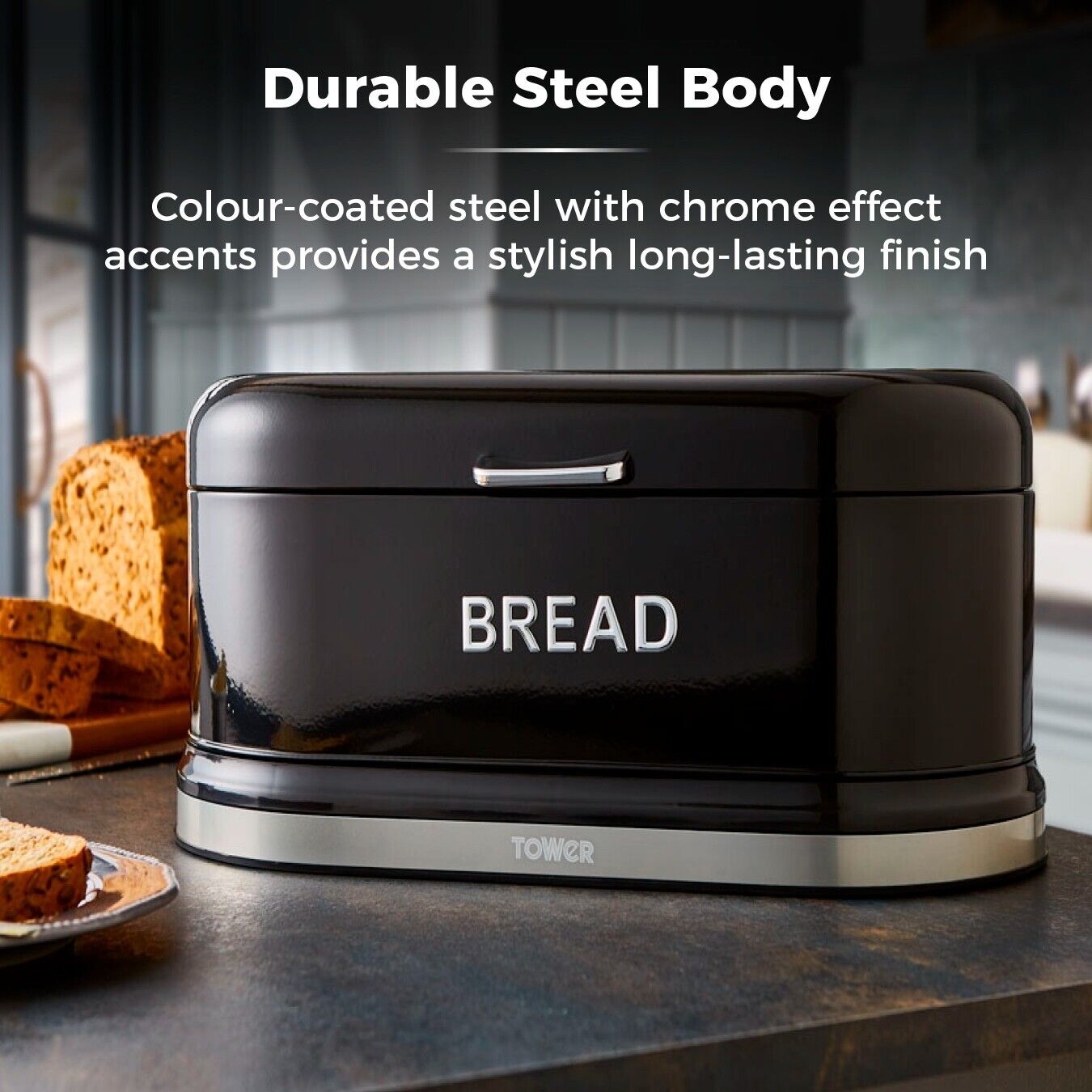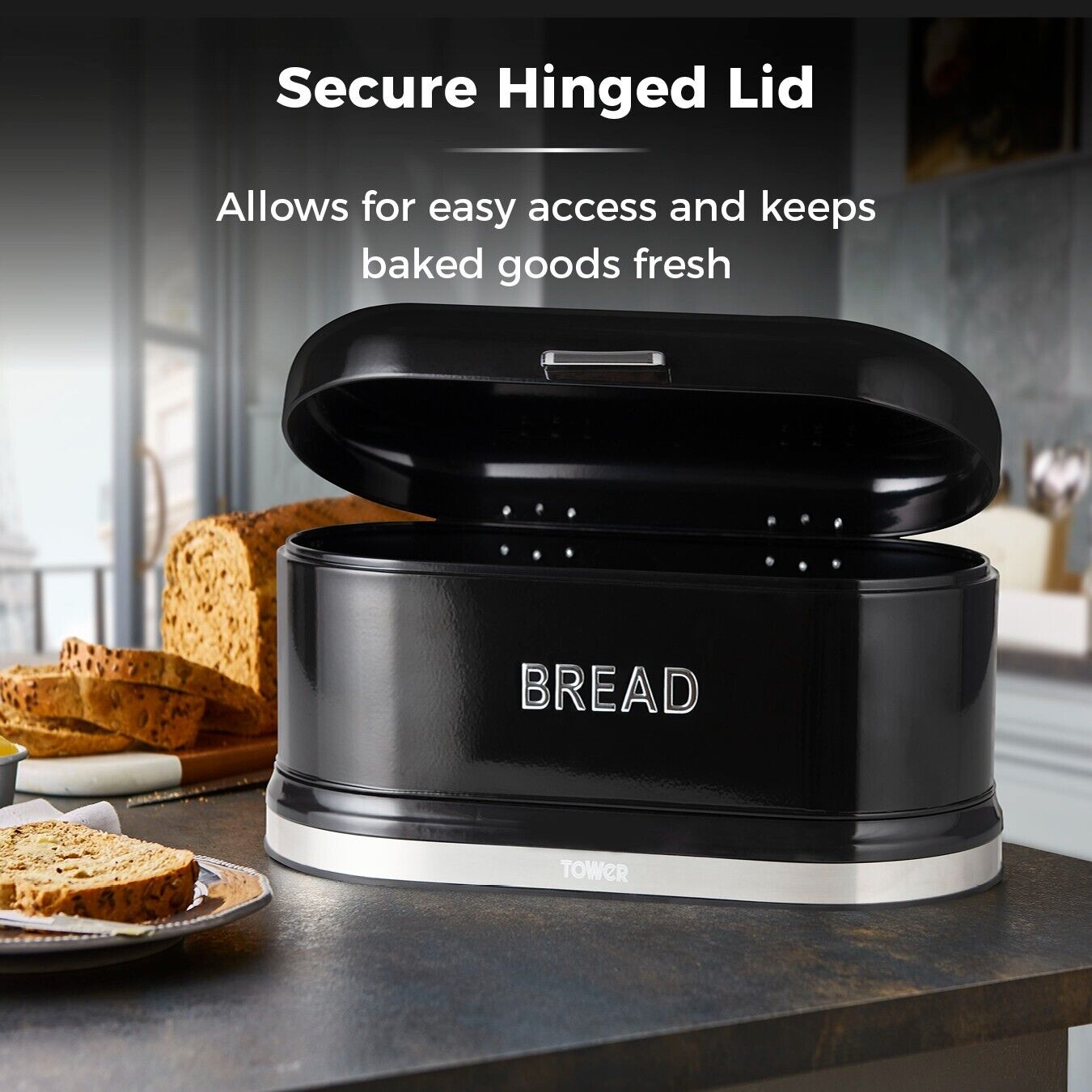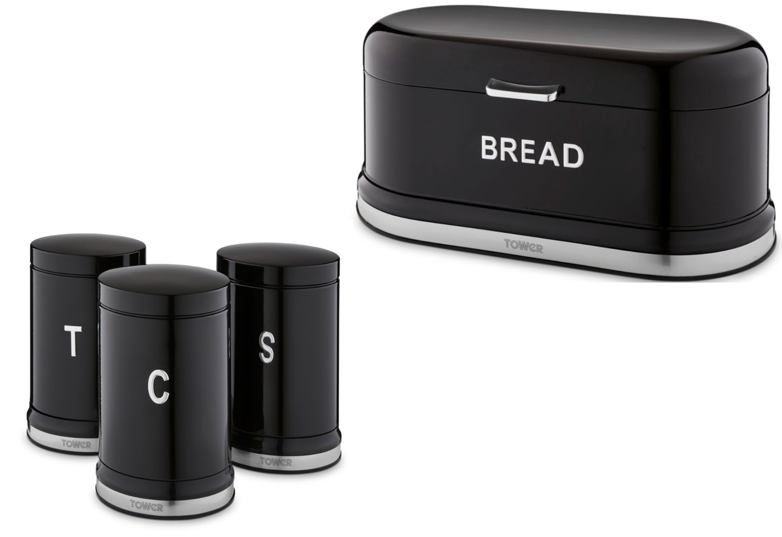 Tower Belle Noir Bread Bin Canisters Kitchen Storage Set in Black