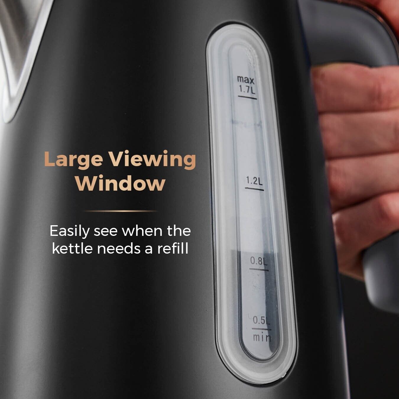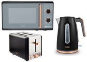Tower Cavaletto Contemporary Matching KItchen Set in Black & Rose Gold with 1.7L 3KW Jug Kettle, 2 Slice Toaster & 800W 20L Microwave