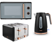 Tower Cavaletto Black/Rose Gold Jug Kettle 4 Slice Toaster Microwave Kitchen Set