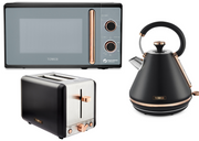 New Tower Cavaletto Black & Rose Gold 1.7L 3KW Pyramid Kettle, 2 Slice Toaster & 800W 20L Microwave Set. Contemporary Matching Kitchen Electrical Set in Black & Rose Gold