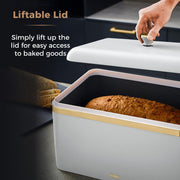 Cavaletto Bread Bin in Optic White with Brushed Champagne Accents