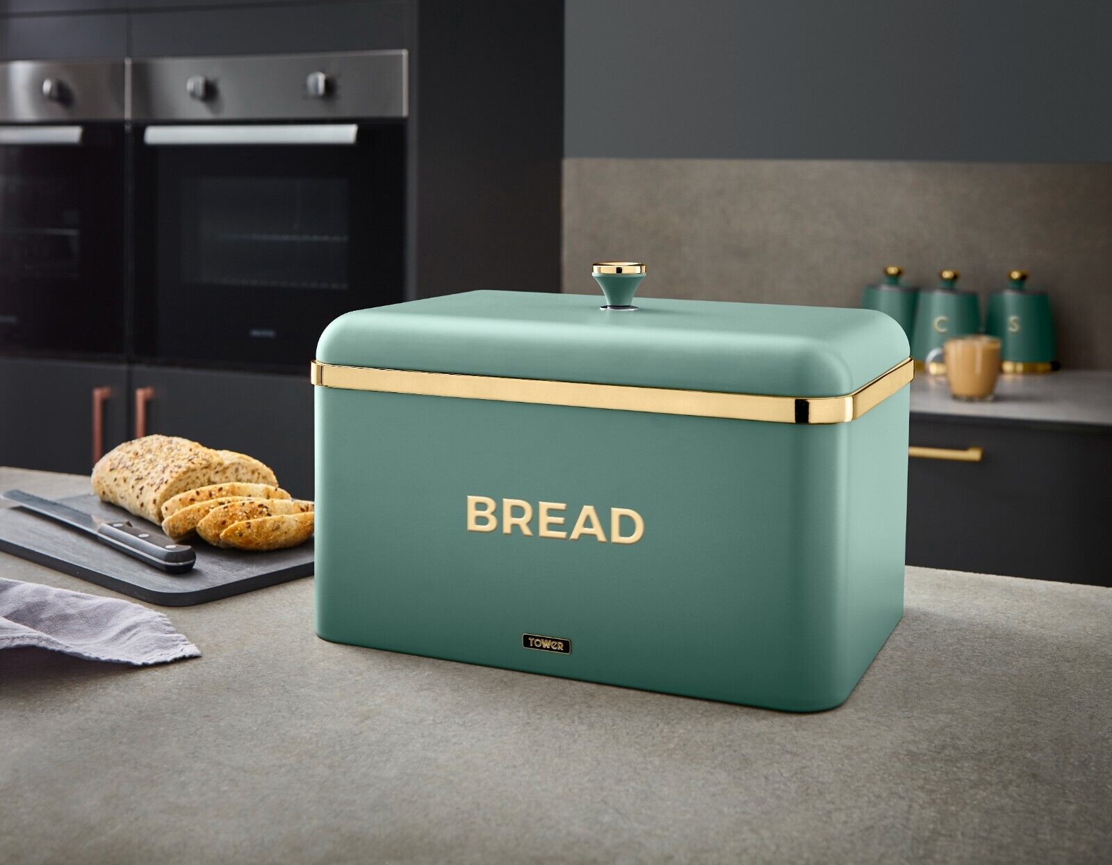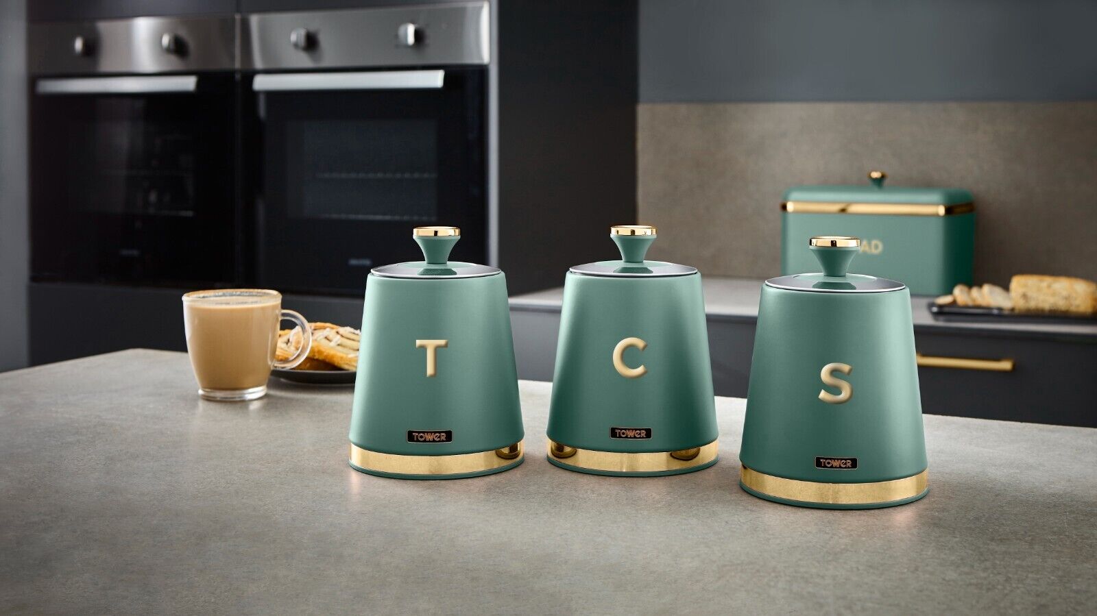 Tower Cavaletto Bread Bin Canisters Matching Set in Jade & Champagne Gold