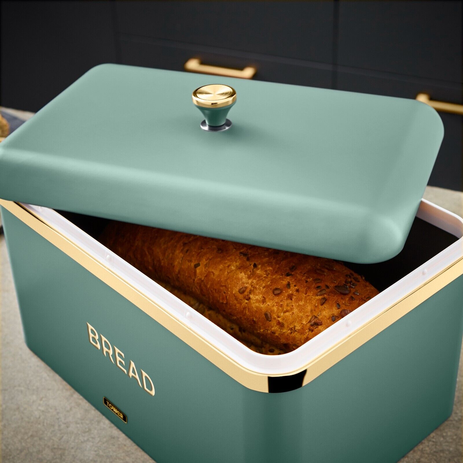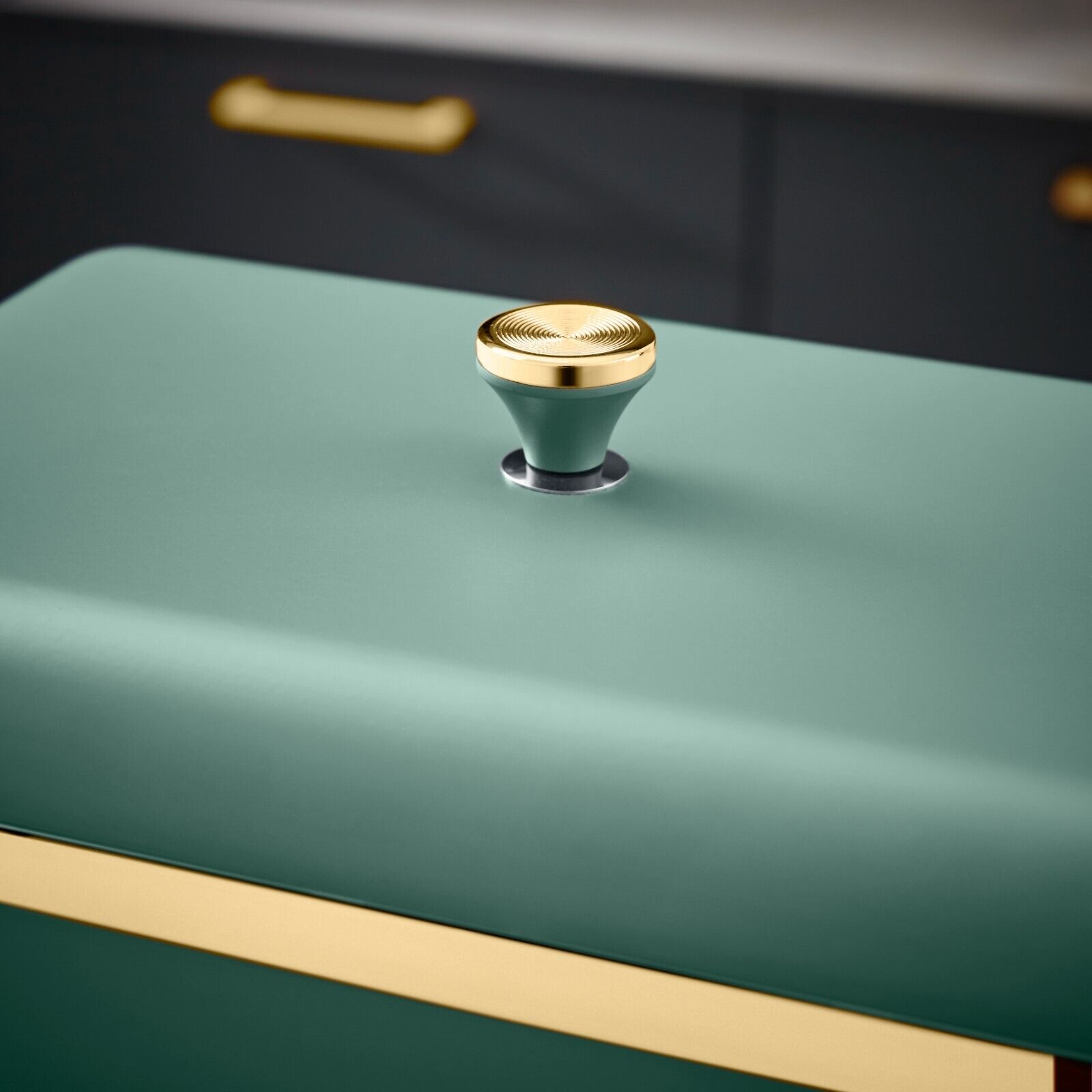 Cavaletto Bread Bin in Jade with Brushed Champagne Accents