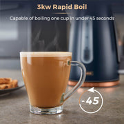 This Tower Cavaletto Jug kettle is the perfect addition to today's modern kitchen. The 3kW of power provides rapid boiling, so you can boil one cup of tea, coffee or hot chocolate in less than 45 seconds. Featuring a flip top lid and large 1.7 litre capacity, up to 7 cups can be made at once on a single boil.