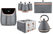 Tower Cavaletto Grey & Rose Gold Pyramid Kettle, 4 Slice Toaster, 6L Air Fryer, Bread Bin & Canisters Matching Kitchen Set of 7