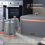 Wrapped in a staple design feature for today's modern home, the durable carbon build of these canisters locks in the freshness of your chosen ingredients, while presenting a reliable and highly styled storage compartment for your teas, coffees and sugars. The carbon structure is finished with a coating of matte grey, with rose gold tones for a tasteful finishing touch to compliment your kitchen environment. The removable lids provide maximum access to the inner capacity for easily retrieving of the contents stored inside. Each canister requires only a simple wipe clean to make for easy maintenance of its on-trend finish.
