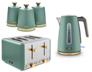Tower Cavaletto Jug Kettle, 4 Slice Toaster & Canisters Set in Jade with Champagne Accents