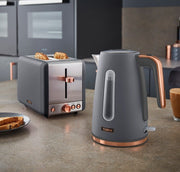 Brand New Tower Cavaletto Jug Kettle, 2 Slice Toaster & Tea, Coffee & Sugar Canisters. Matching Kitchen Set in Grey & Rose