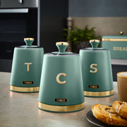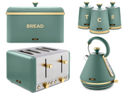 Tower Cavaletto Kettle Toaster Bread Bin 3 Canisters Set in Jade & Champagne Gold