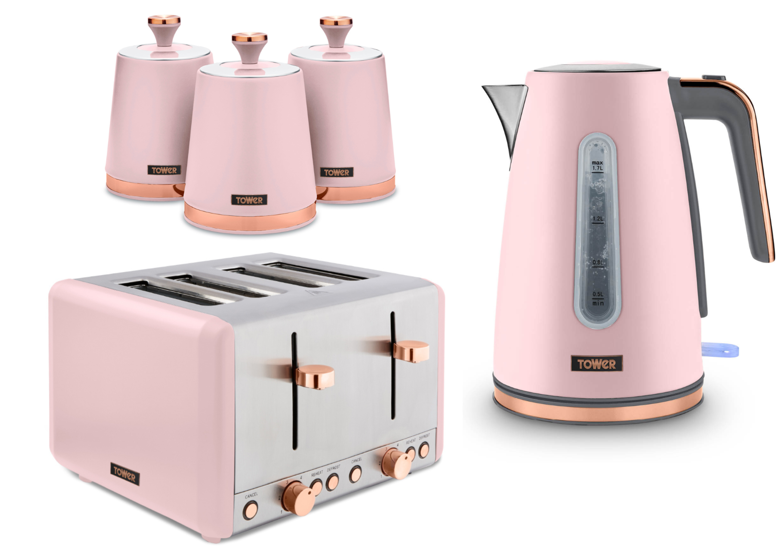 Tower Cavaletto Pink Jug Kettle 4 Slice Toaster Canisters Matching Kitchen Set