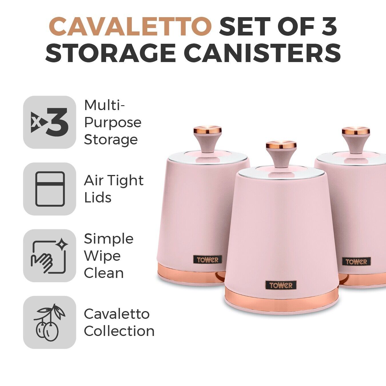 Cavaletto Set of 3 Canisters Marshmallow Pink and Rose Gold