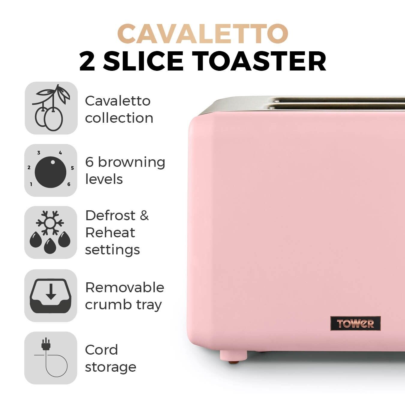 Cavaletto 850W 2 Slice Toaster in Pink & Rose Gold