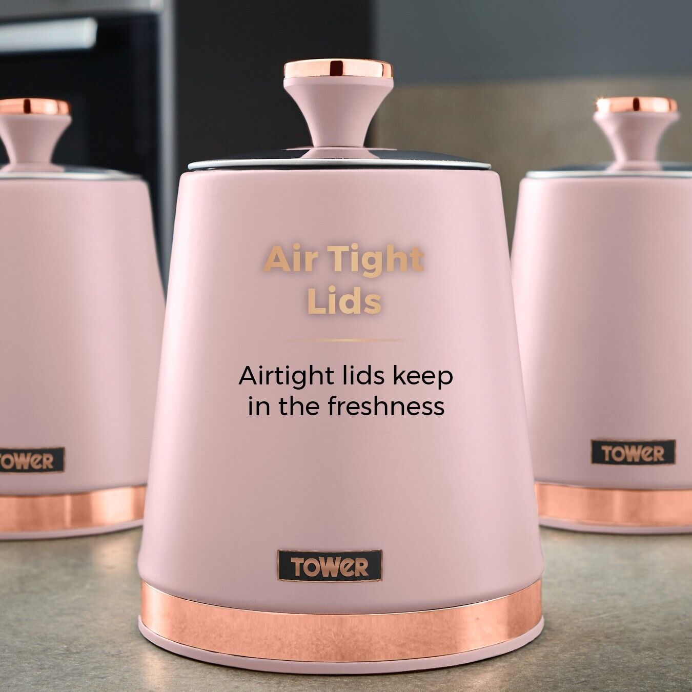 Wrapped in a staple design feature for today's modern home, the durable carbon build of these canisters locks in the freshness of your chosen ingredients, while presenting a reliable and highly styled storage compartment for your teas, coffees and sugars. The carbon structure is finished with a coating of matte pink, with rose gold tones for a tasteful finishing touch to compliment your kitchen environment. The removable lids provide maximum access to the inner capacity for easily retrieving of the contents stored inside. Each canister requires only a simple wipe clean to make for easy maintenance of its on-trend finish.