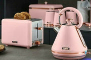 Brand New Tower Cavaletto Pyramid Kettle, 2 Slice Toaster & Canisters Set in Marshmallow Pink & Rose Gold.